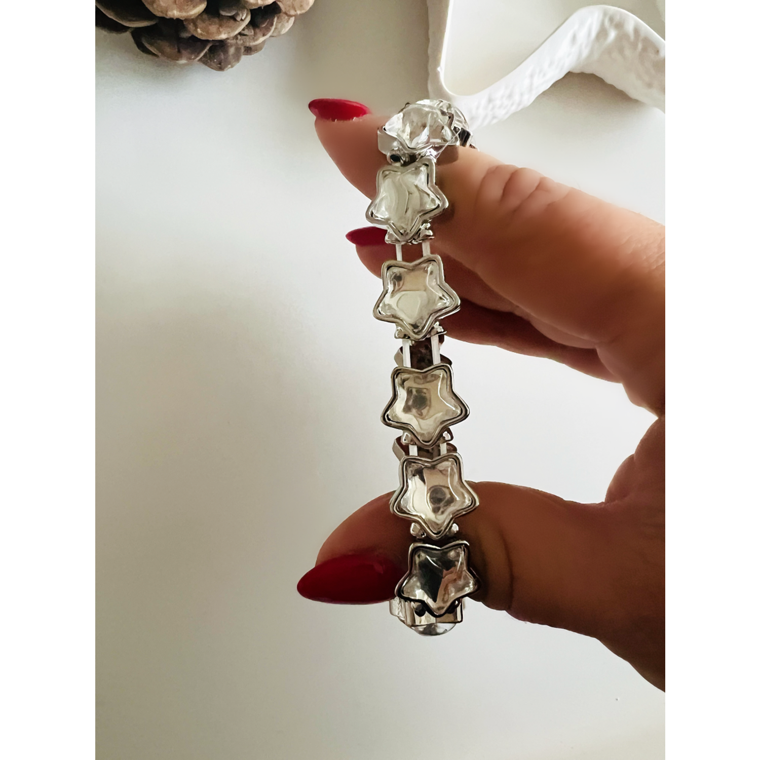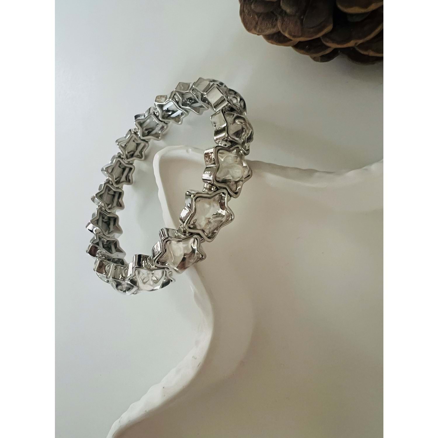 GÜMÜŞ RENK KRİSTAL TAŞLI, LASTİKLİ YILDIZ BİLEKLİK ACR8632