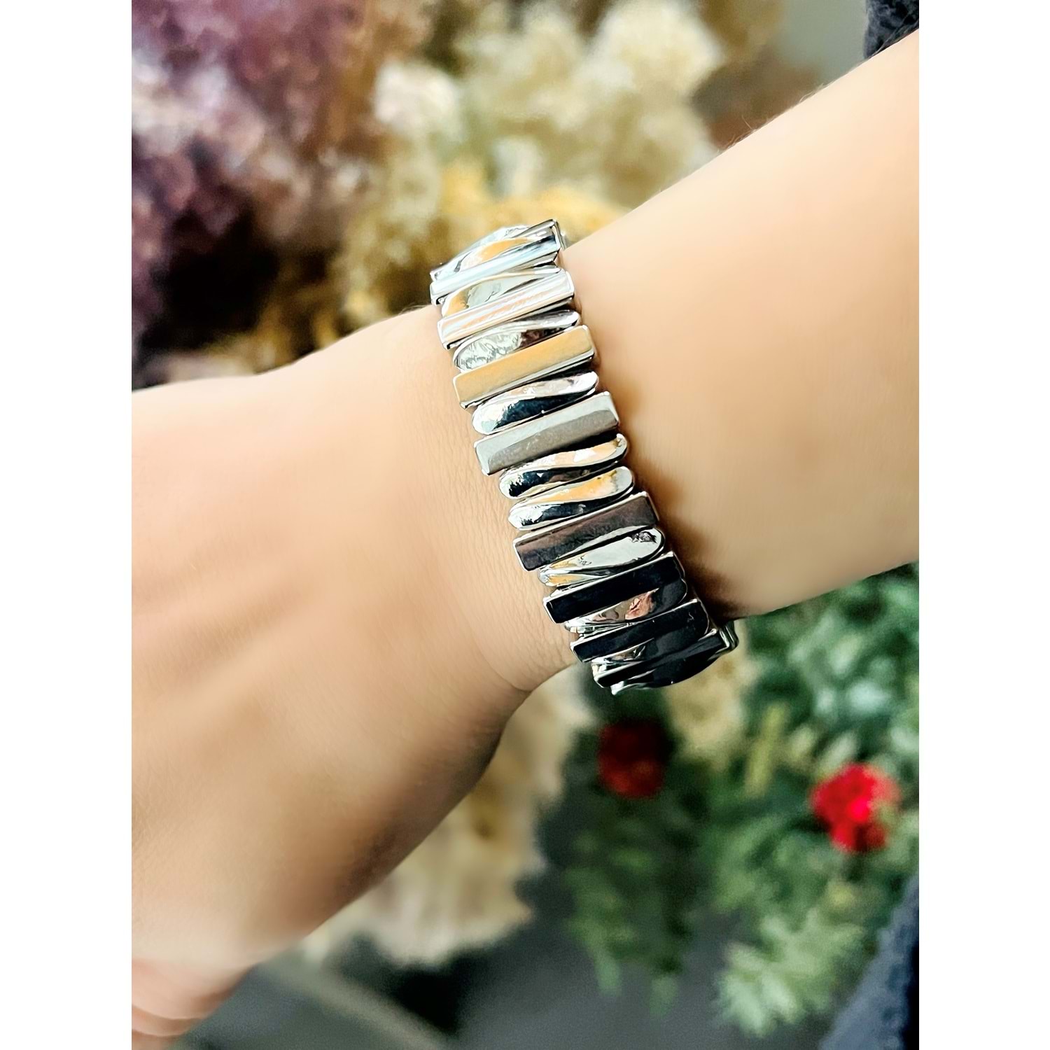 GÜMÜŞ RENK LASTİKLİ ÇUBUK BİLEKLİK ACR8598