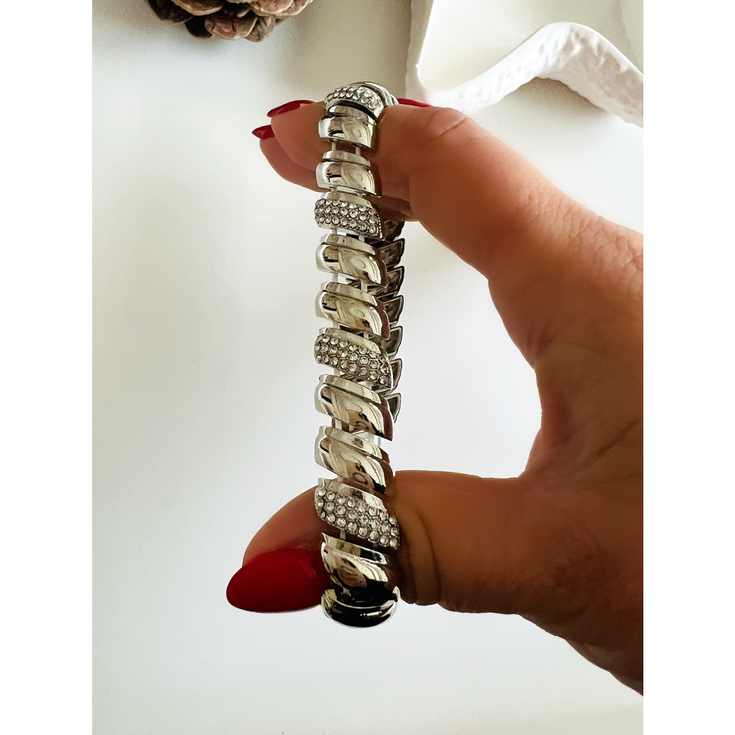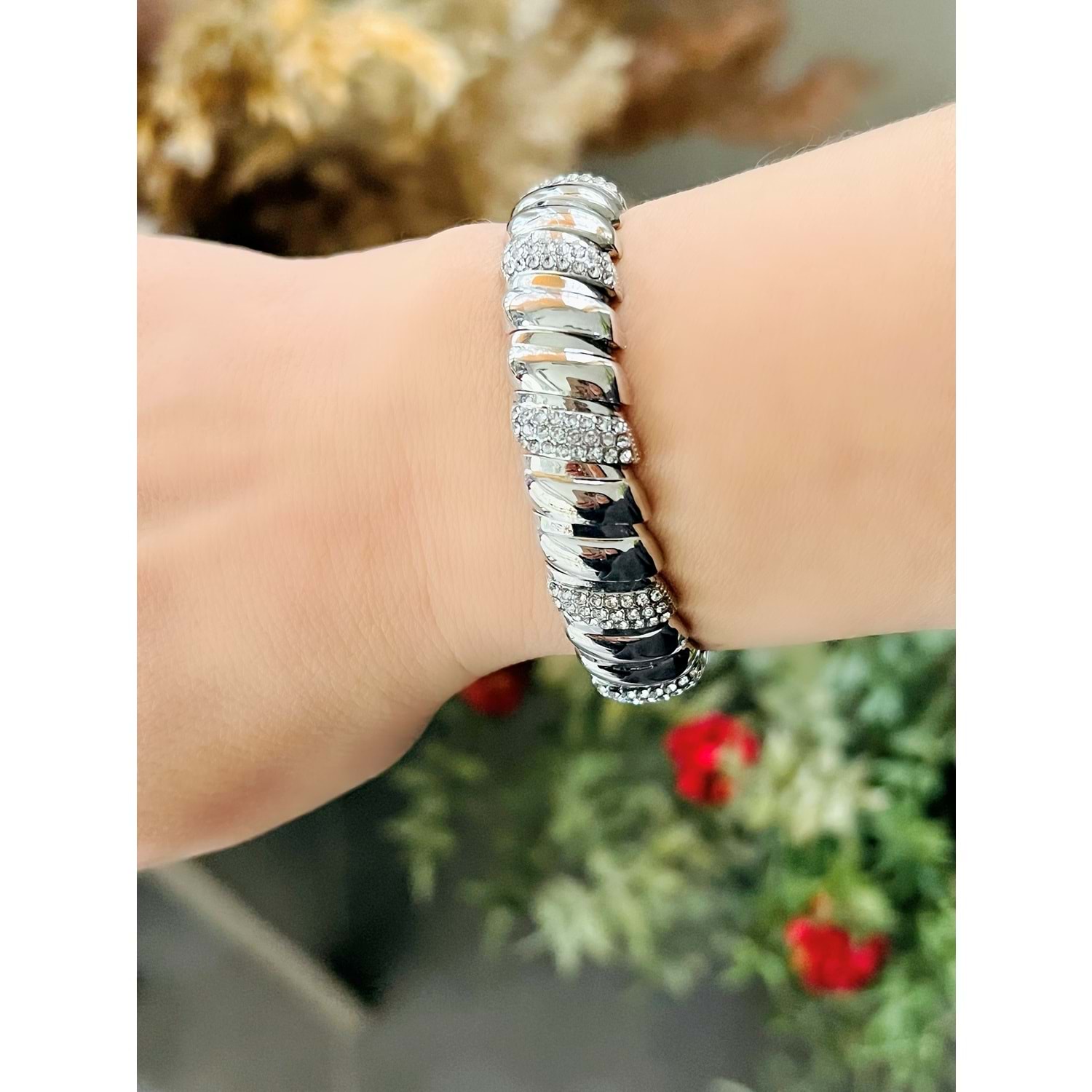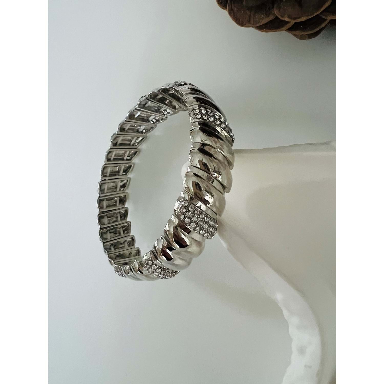 GÜMÜŞ RENK LASTİKLİ TAŞLI BOMBE BİLEKLİK ACR8609