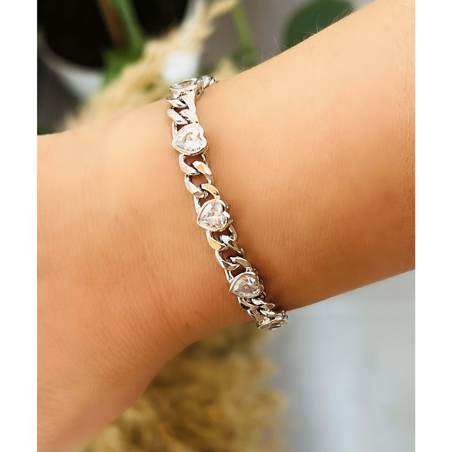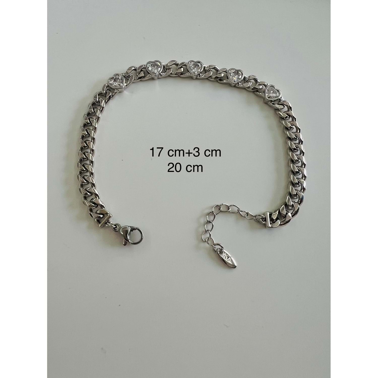 XUPING TAŞLI KALP ZİNCİR BİLEKLİK 17+3CM-GÜMÜŞ RENK ACR6993