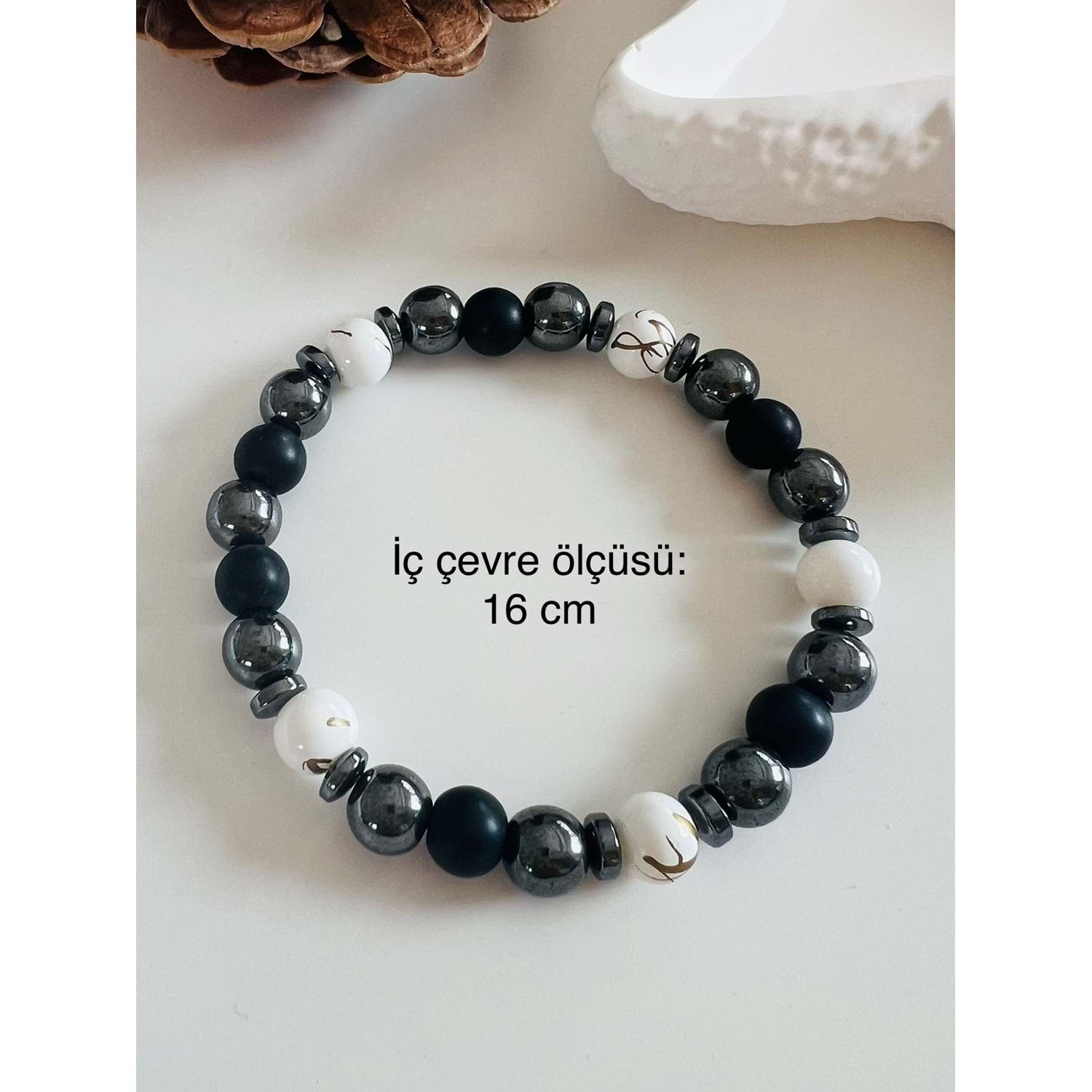 ESNEK MİSİNELİ HEMATİT DOĞAL TAŞLI BİLEKLİK 7 MM ACR1415