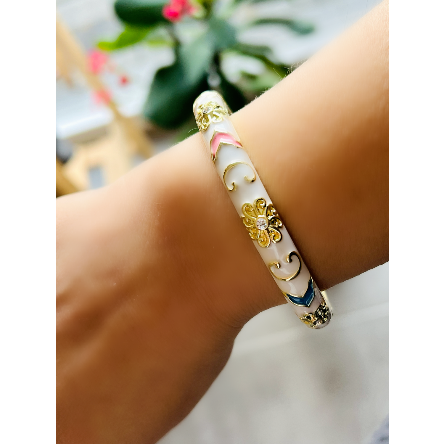 ÖZEL SERİ BEYAZ MİNELİ, ÇİÇEK DESENLİ KELEPÇE ACR8706