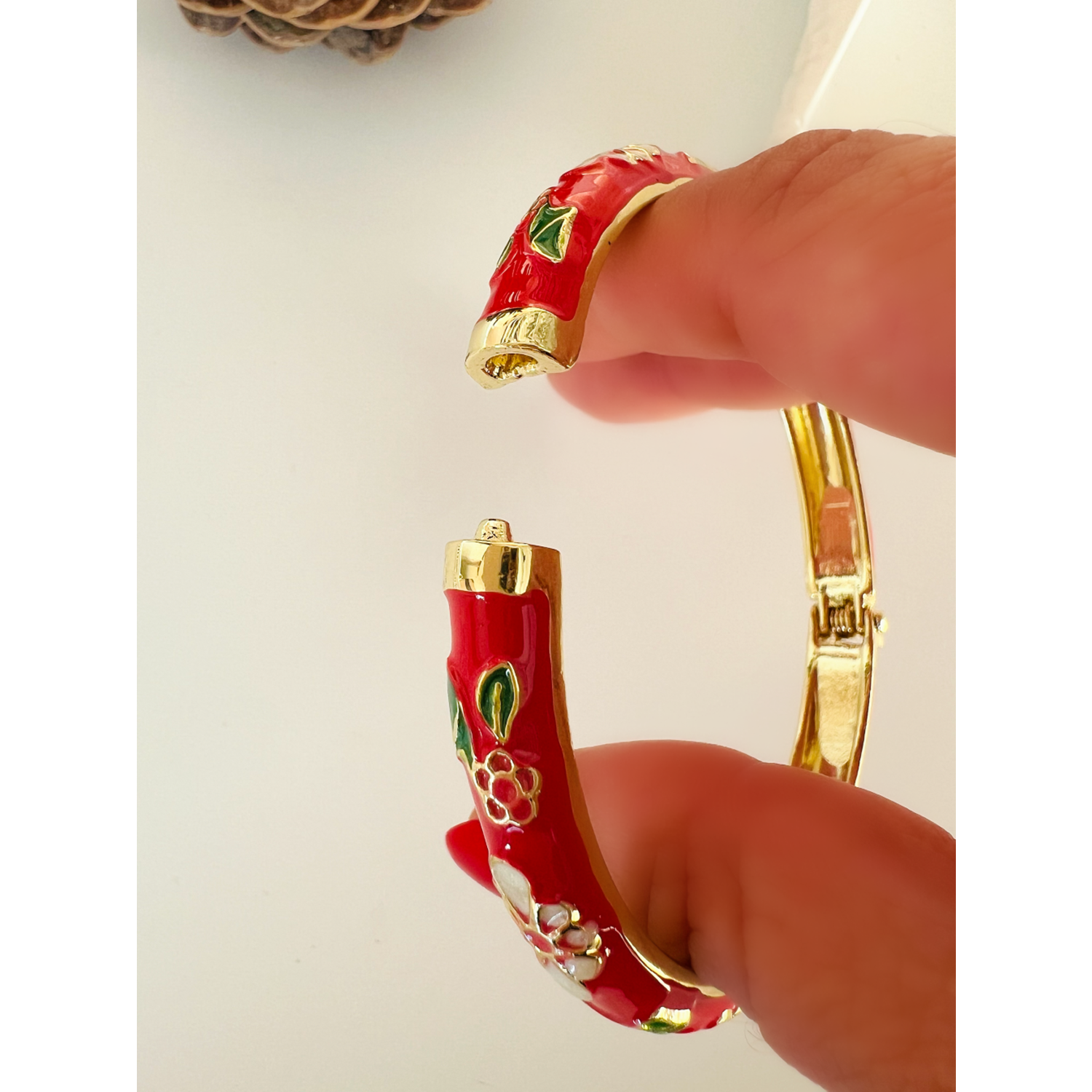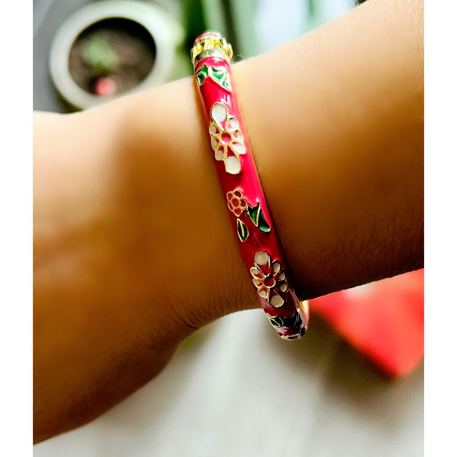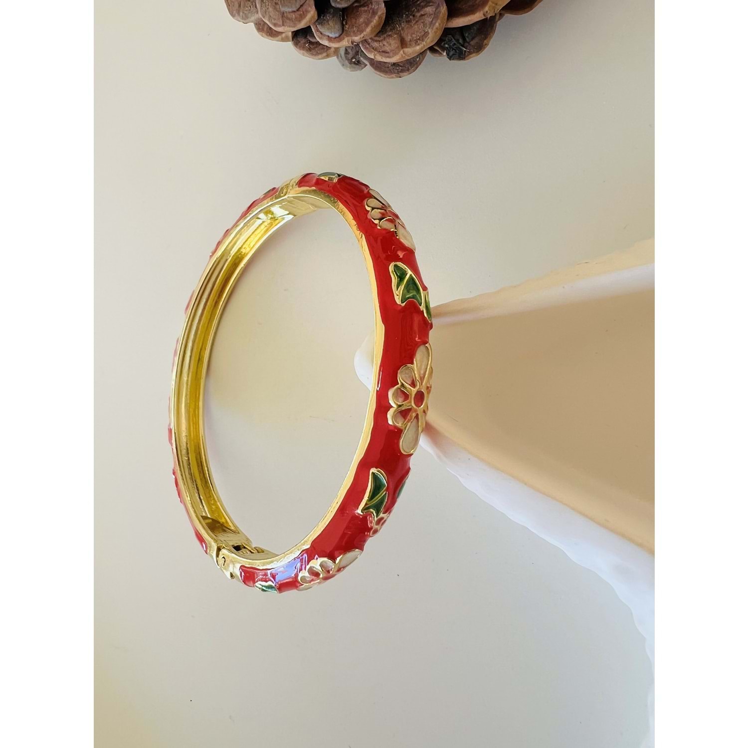 ÖZEL SERİ KIRMIZI MİNELİ, ÇİÇEK DESENLİ KELEPÇE ACR8708