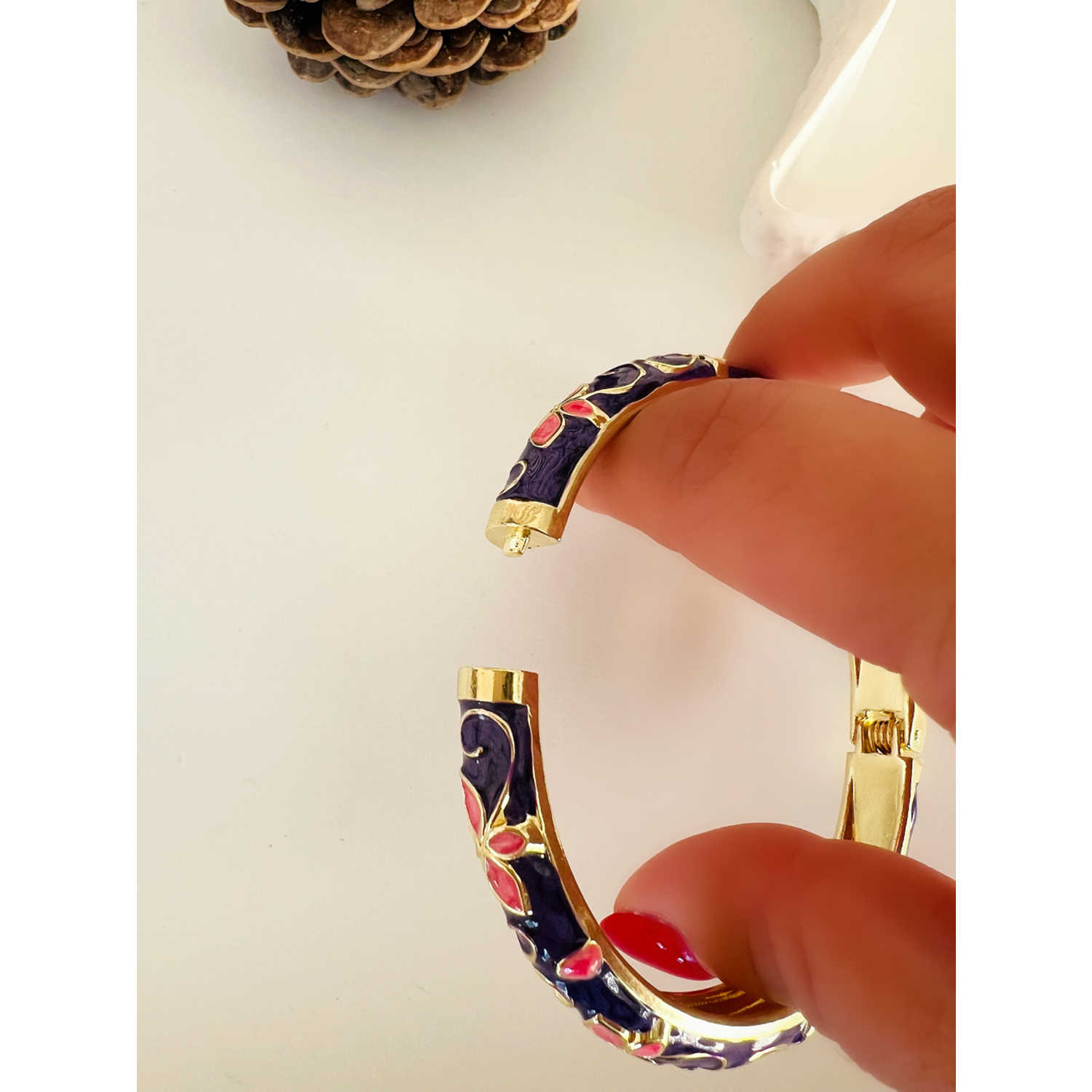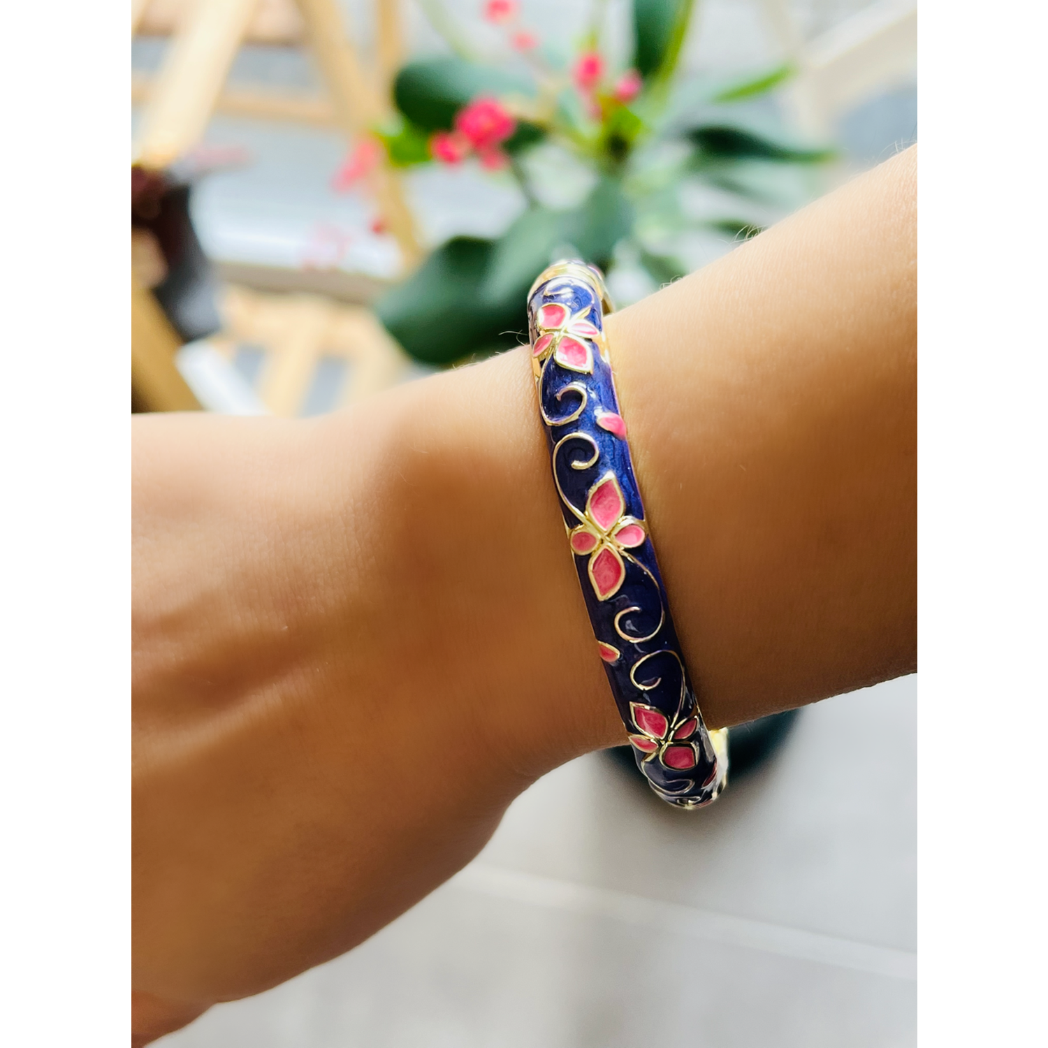 ÖZEL SERİ LACİVERT MİNELİ, ÇİÇEK DESENLİ KELEPÇE ACR8700