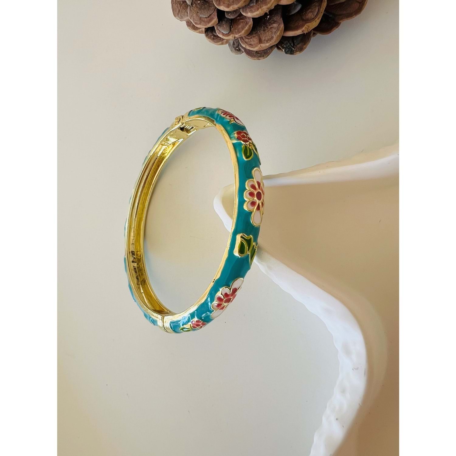 ÖZEL SERİ MAVİ MİNELİ, ÇİÇEK DESENLİ KELEPÇE ACR8704
