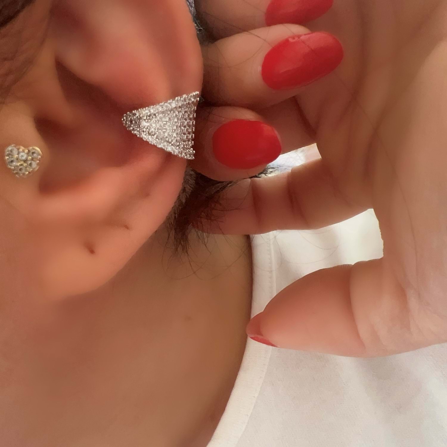 TAŞLI ÜÇGEN KIKIRDAK (EARCUFF) KÜPE-GÜMÜŞ RENK ACR7969