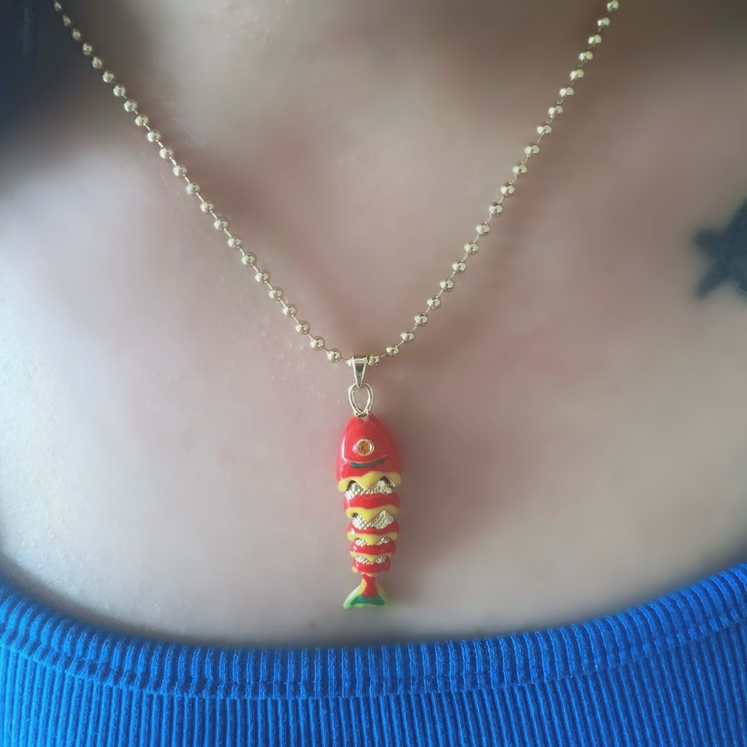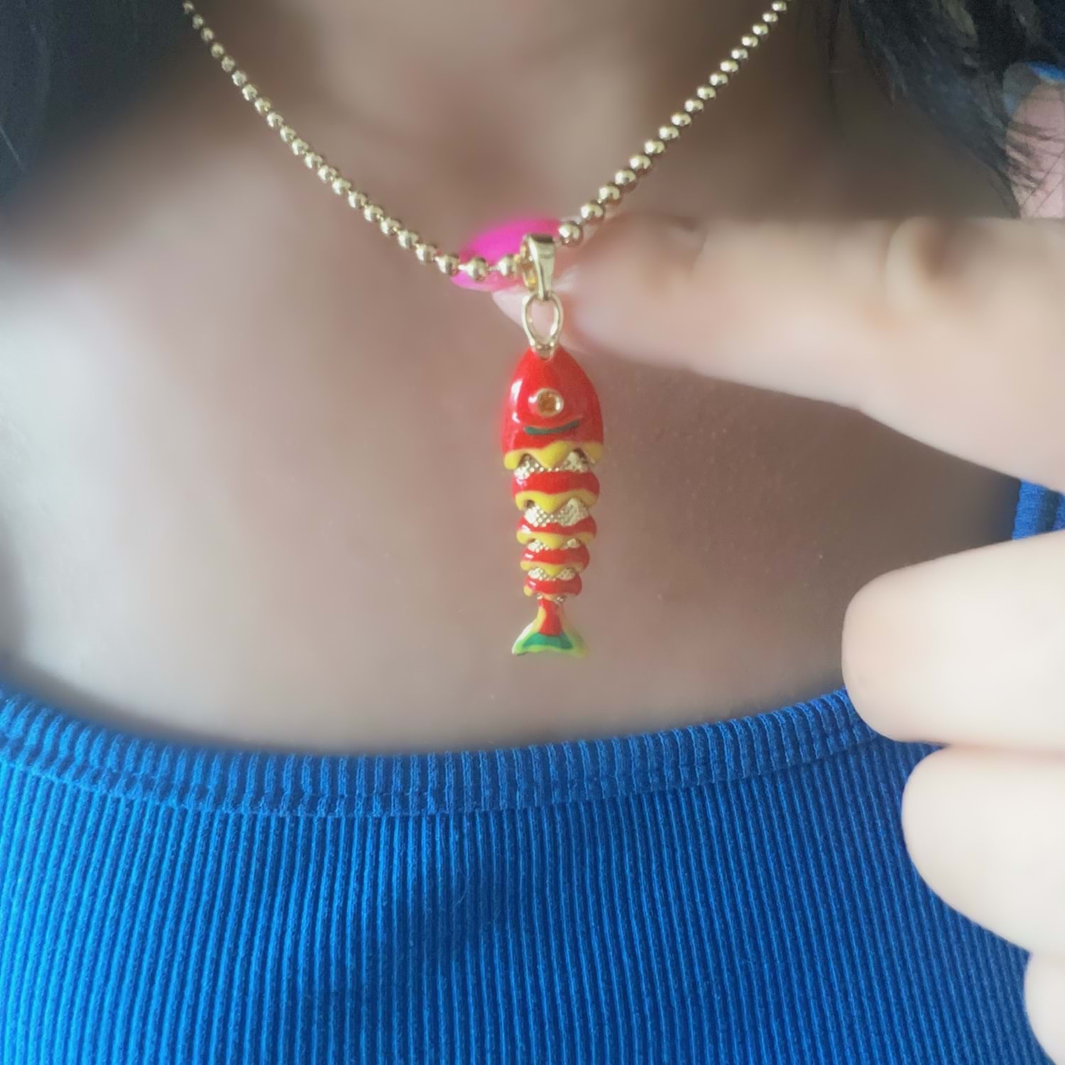 KIRMIZI MİNELİ BALIK ÇELİK KOLYE 40+5CM-GOLD ACR6172
