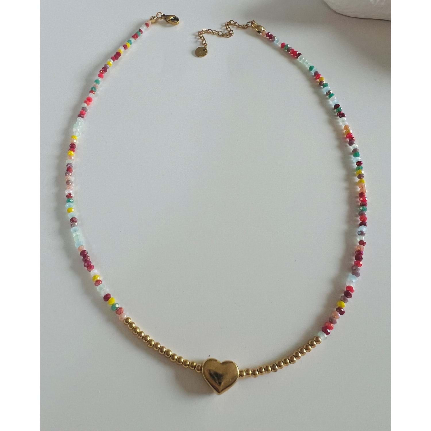 RENKLİ BONCUKLU KALP ÇELİK KOLYE 40+5CM-GOLD RENK ACR6064