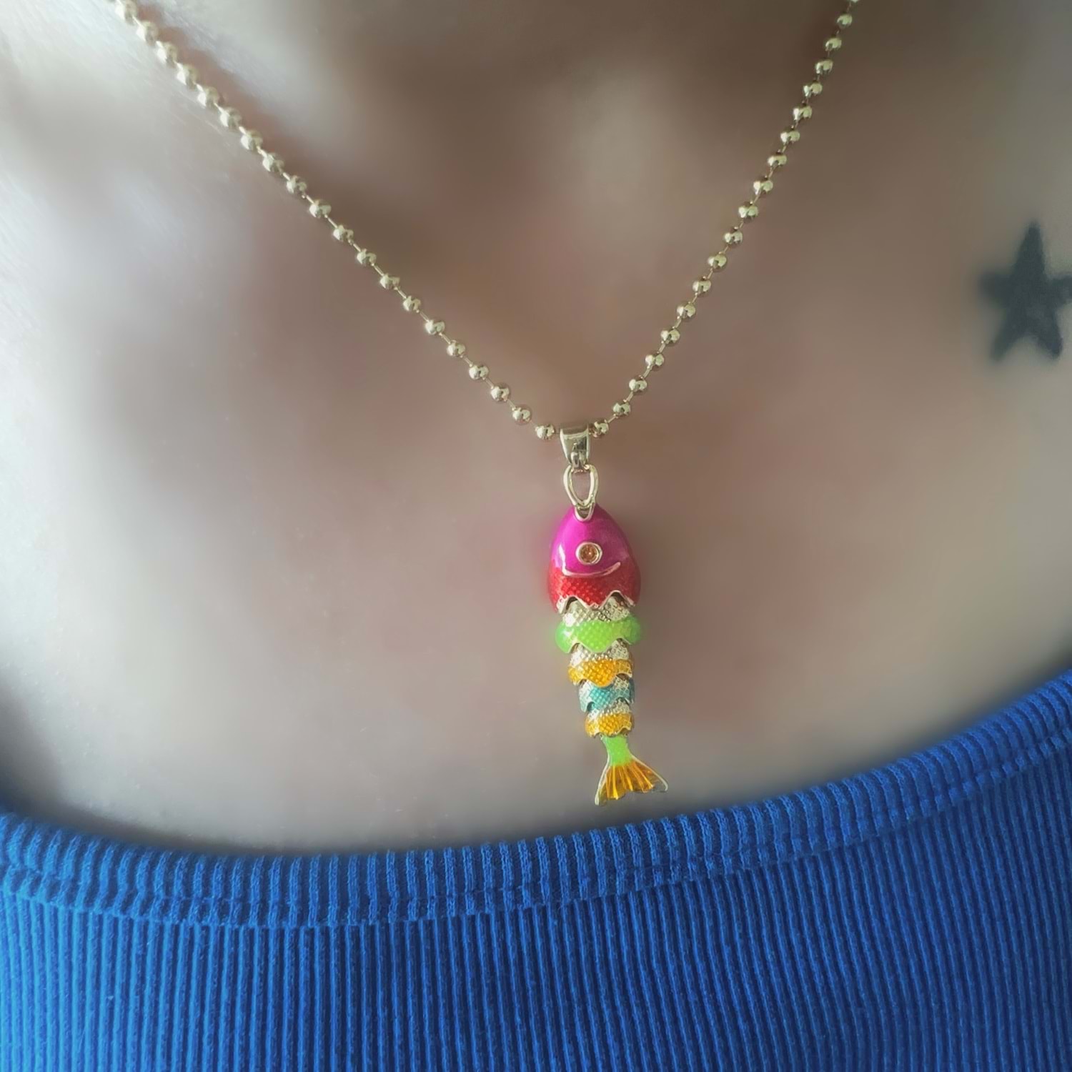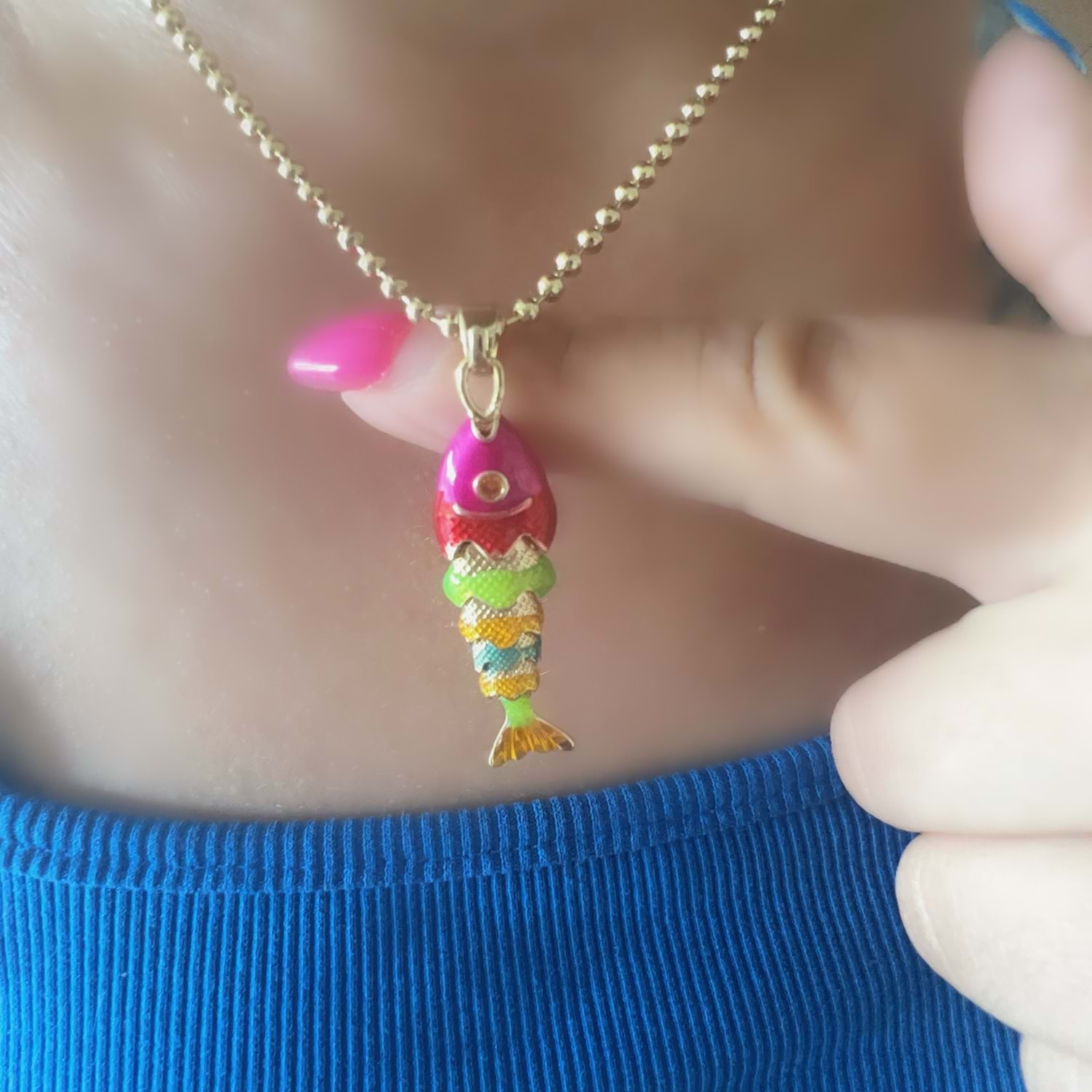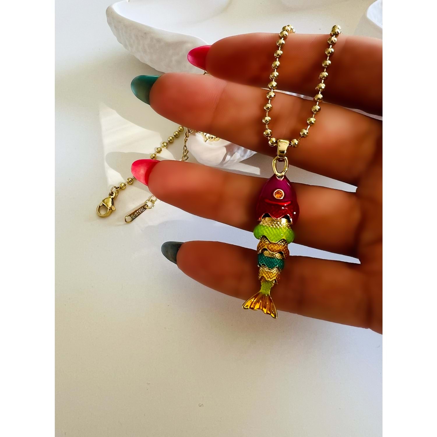 RENKLİ MİNELİ BALIK ÇELİK KOLYE 40+5CM-GOLD ACR6175