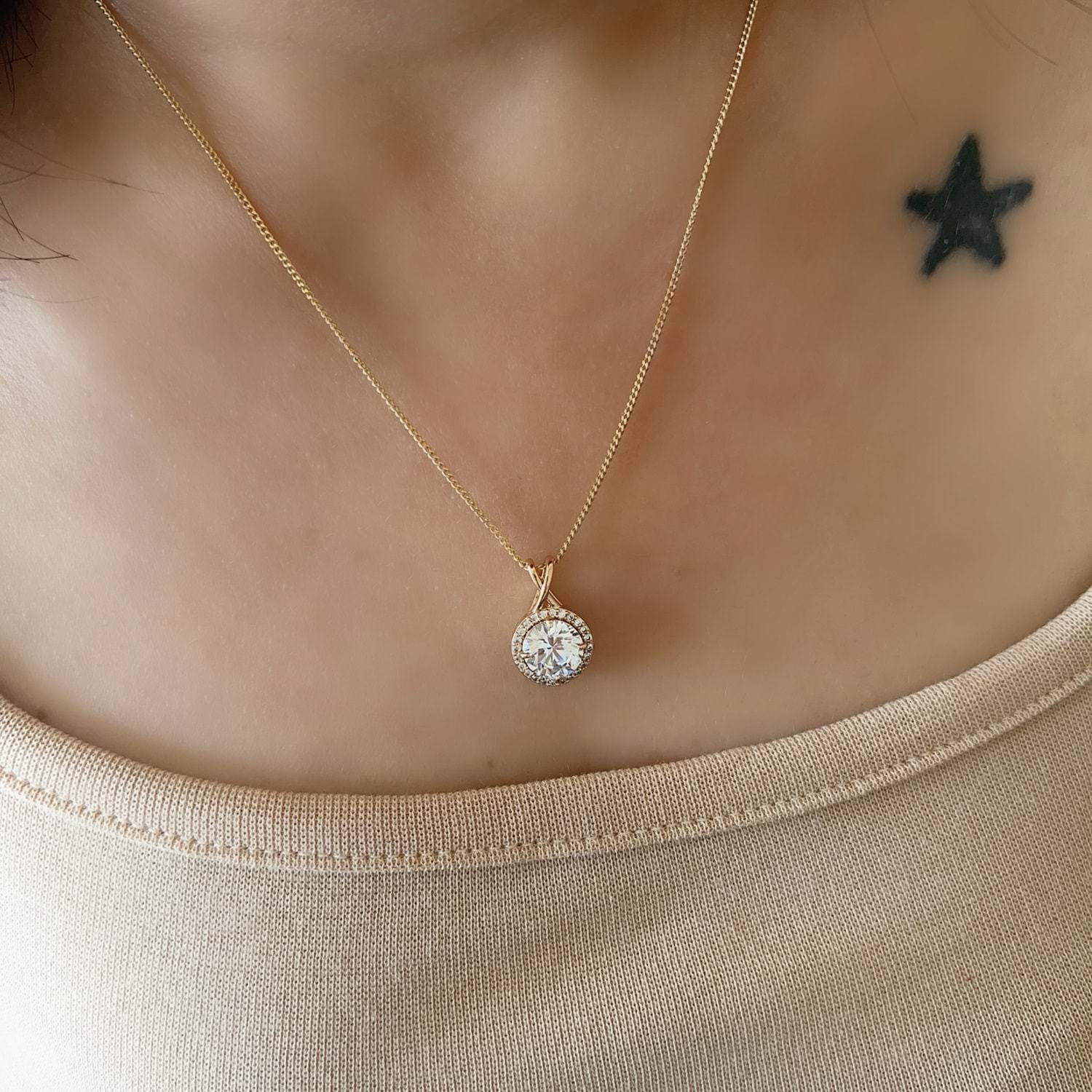 XUPING YUVARLAK TAŞLI TEK TAŞ KOLYE 45CM-ROSE RENK ACR6889