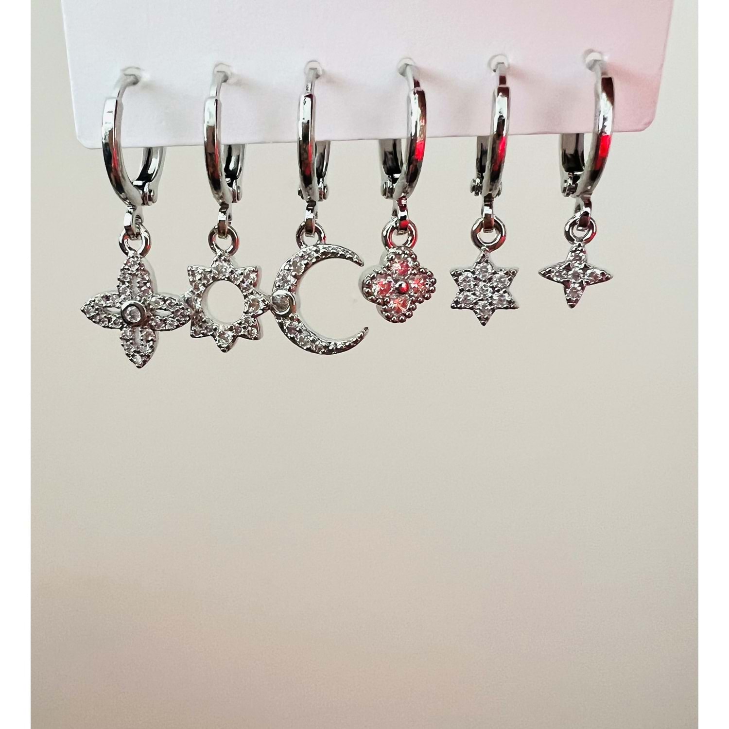6'LI YONCALI, YILDIZLI KÜPE SETİ-GÜMÜŞ RENK ACR9001