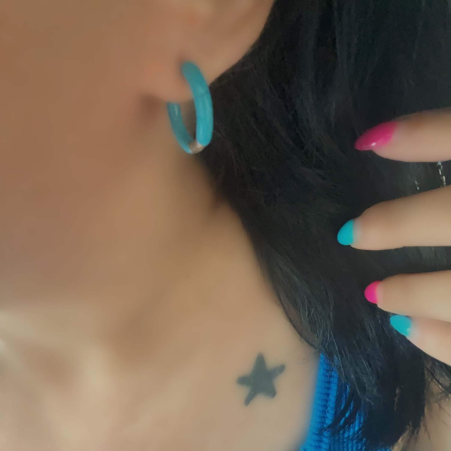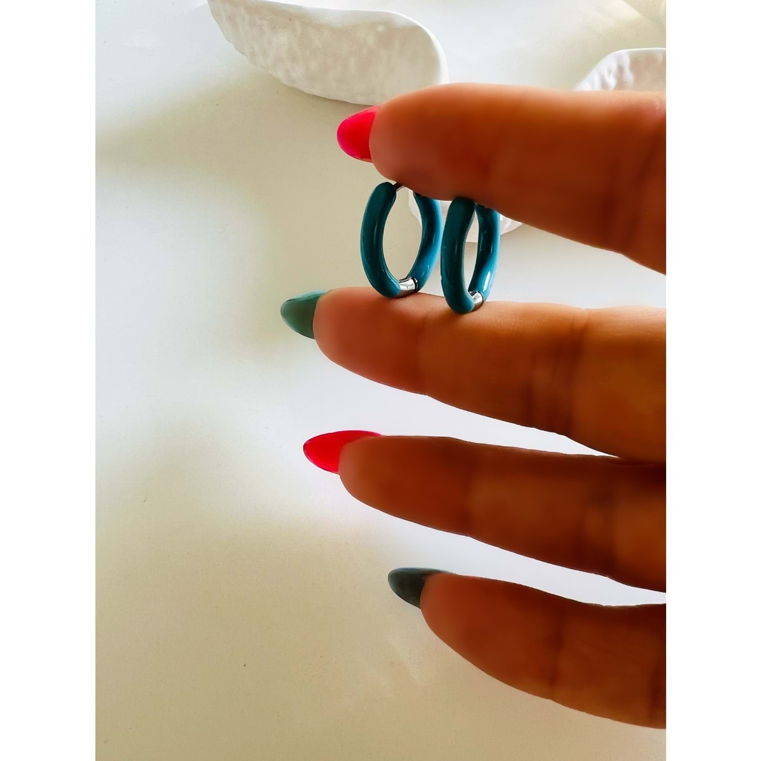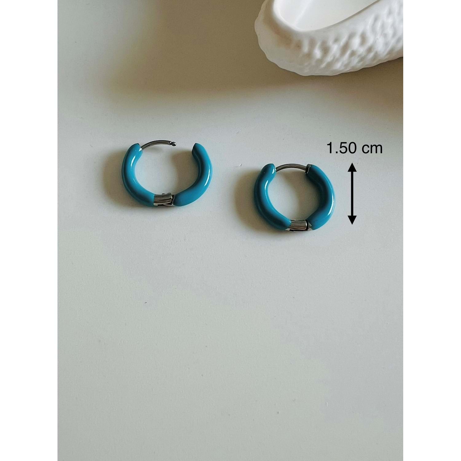 ÇELİK TURKUAZ MİNELİ HALKA KÜPE-GÜMÜŞ ACR6184