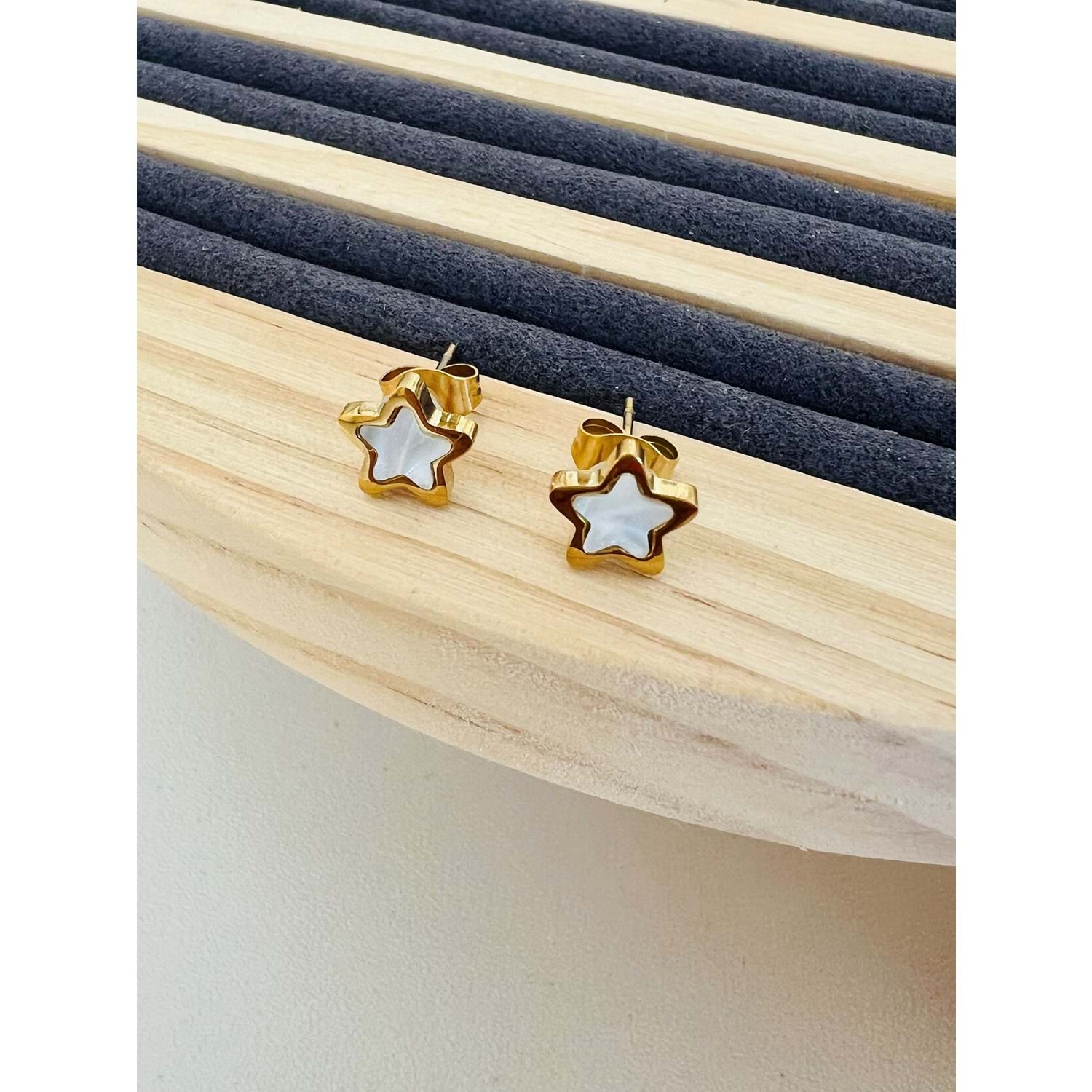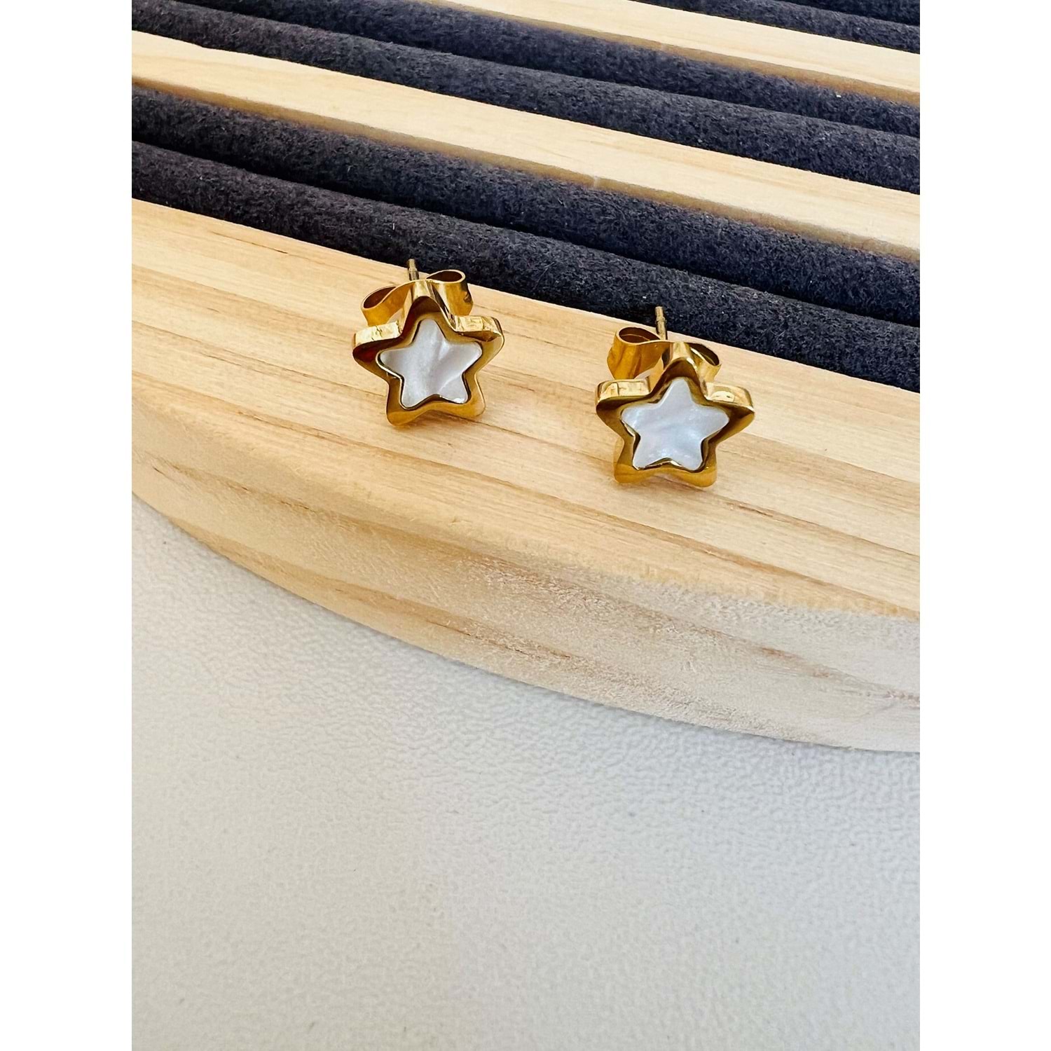 GOLD RENK SEDEFLİ ÇELİK YILDIZ KÜPE 8 MM ACR9645