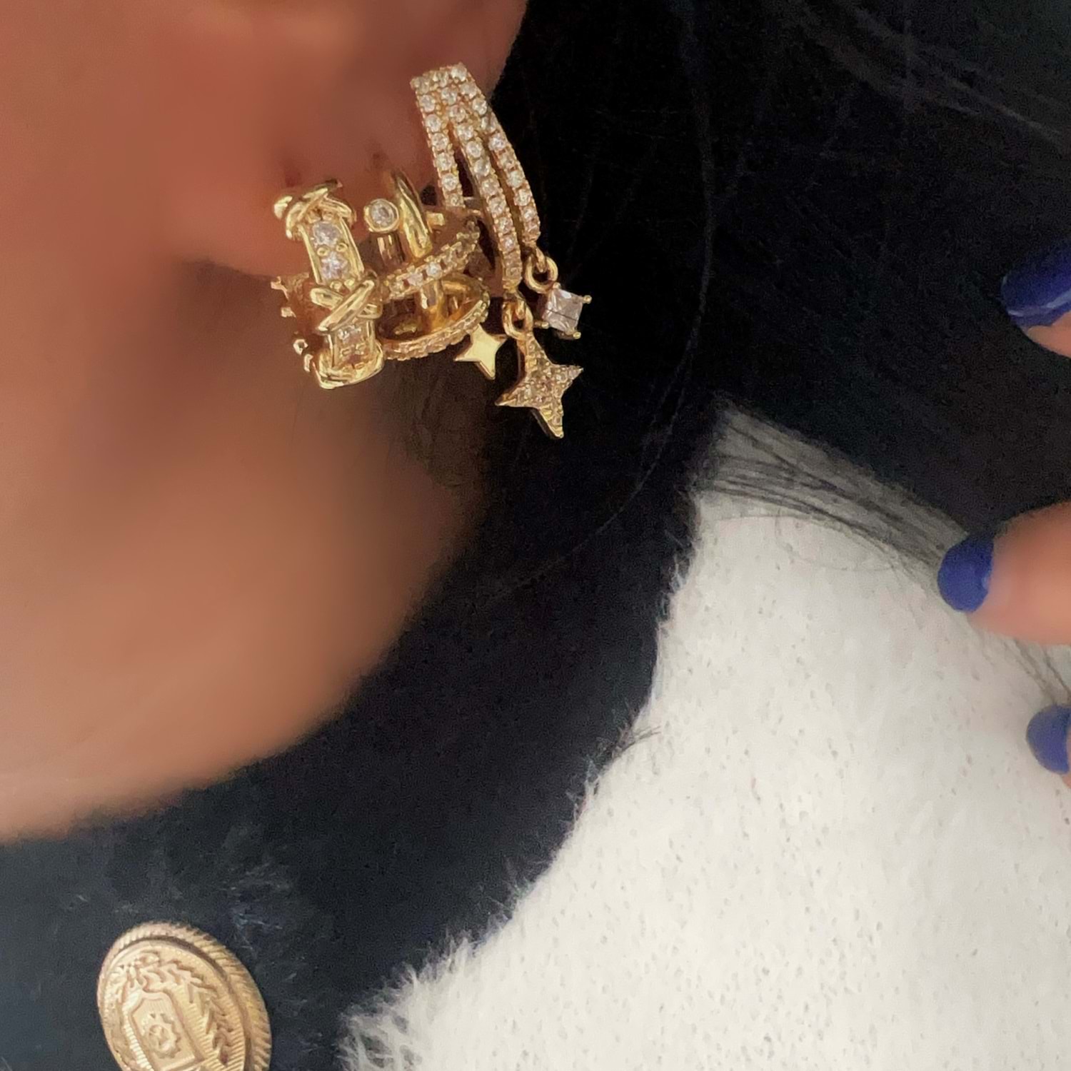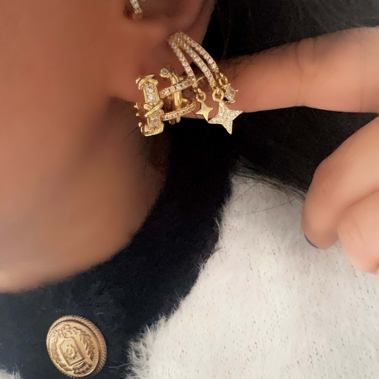 ÜÇLÜ HALKA-SARMAL HALKA-YILDIZ DETAYLI KÜPE SETİ-GOLD RENK ACR9468