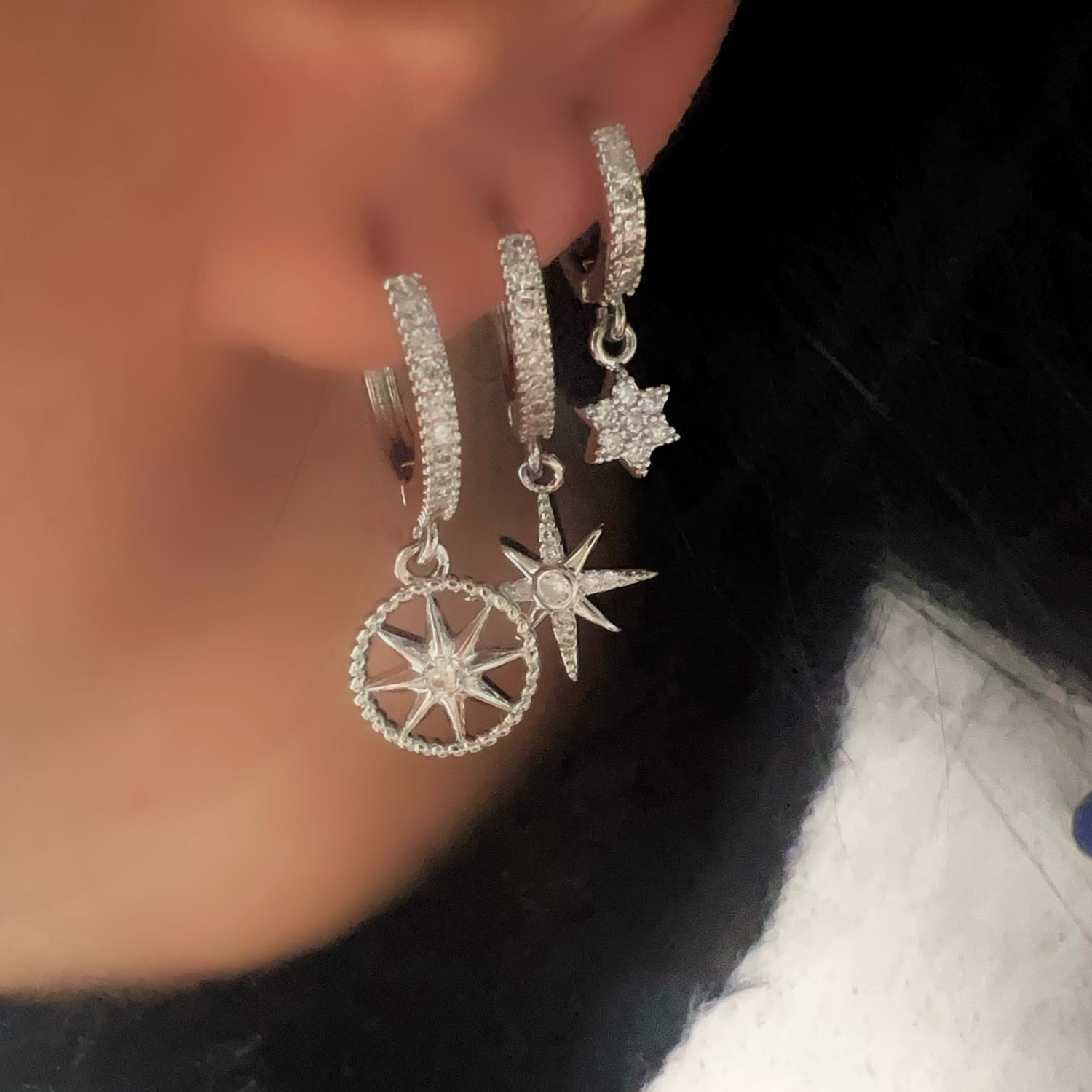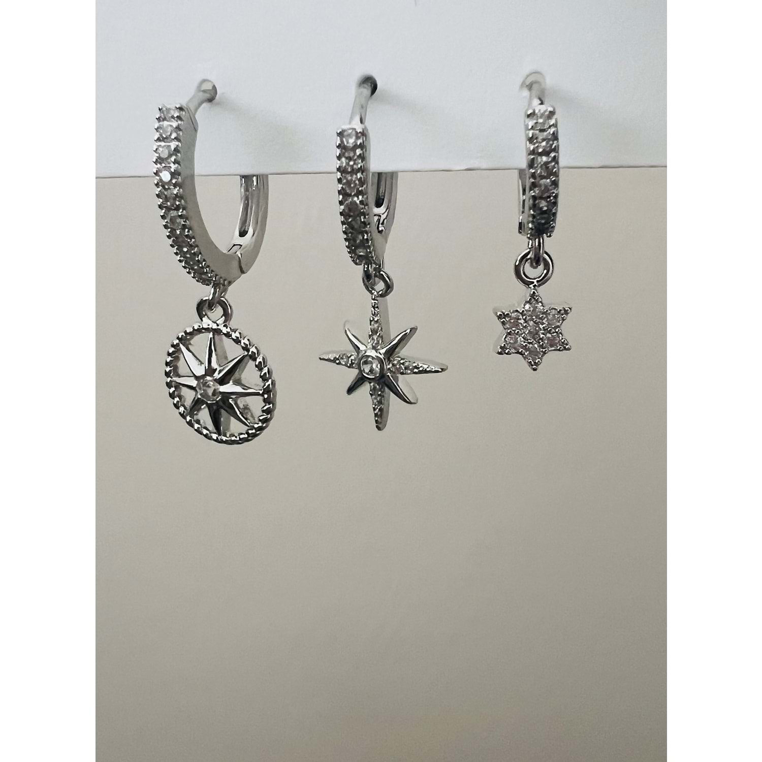 ÜÇLÜ KUTUP YILDIZ KÜPE SETİ-GÜMÜŞ RENK ACR9477