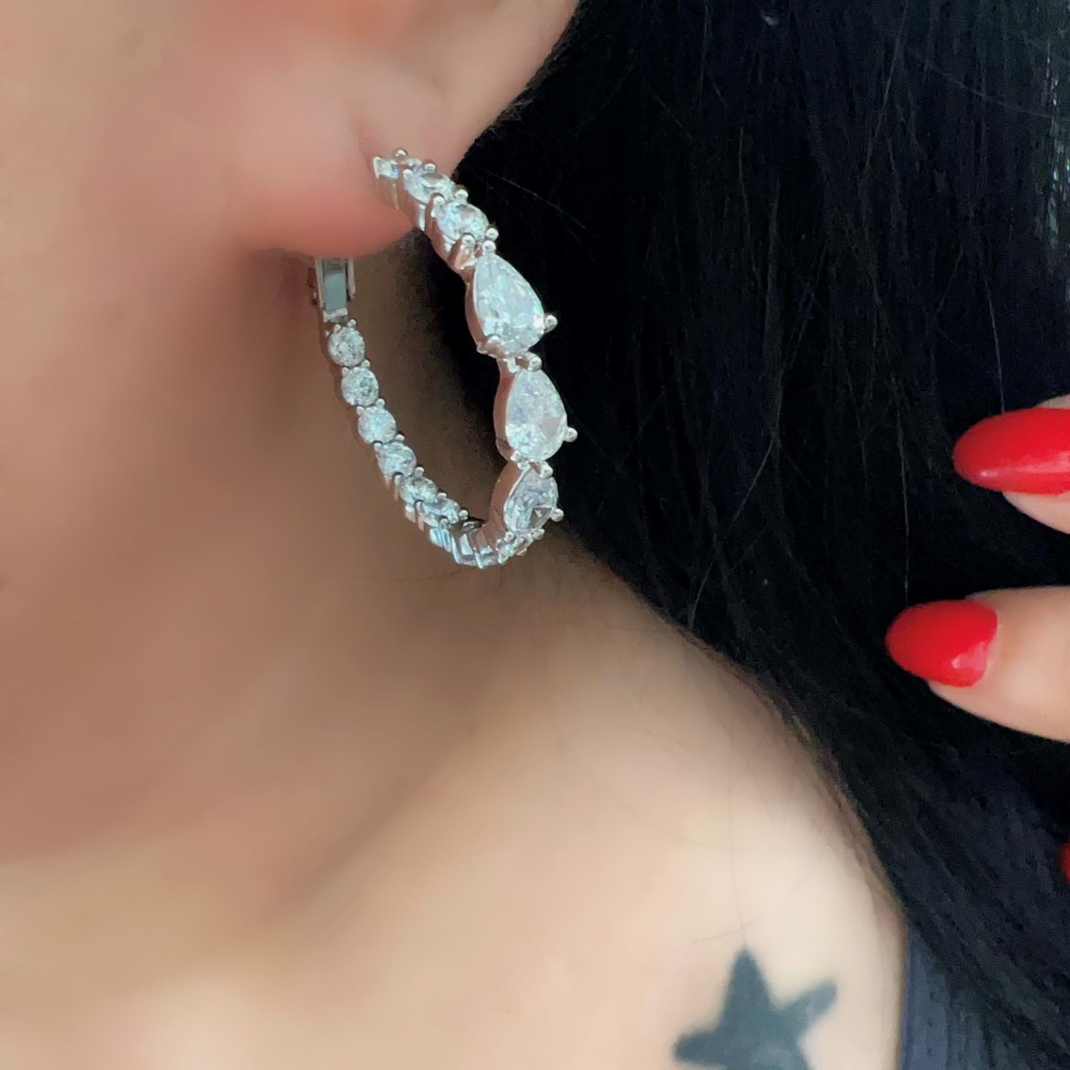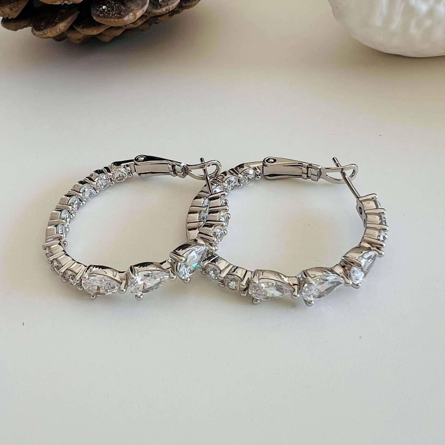 XUPING DAMLA TAŞLI HALKA KÜPE-GÜMÜŞ RENK ACR7596