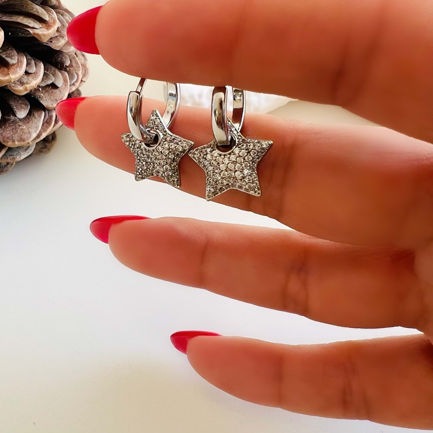Küpe, rodyum kaplama, vip üründür. Ağır kimyasal maddeler ile temas ettirilmediği sürece kararma yapmaz.