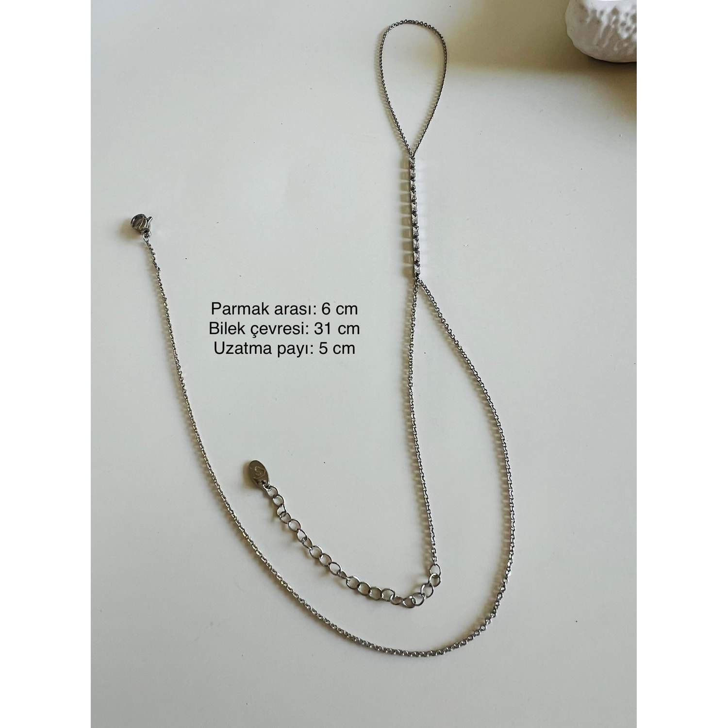 Rodyum kaplama, vip üründür. Ağır kimyasal maddeler ile temas ettirilmediği sürece kararma yapmaz. Bileği çevreleyen zincir, ayarlamalıdır. Bileğinize göre istediğiniz gibi ayarlayabilirsiniz.