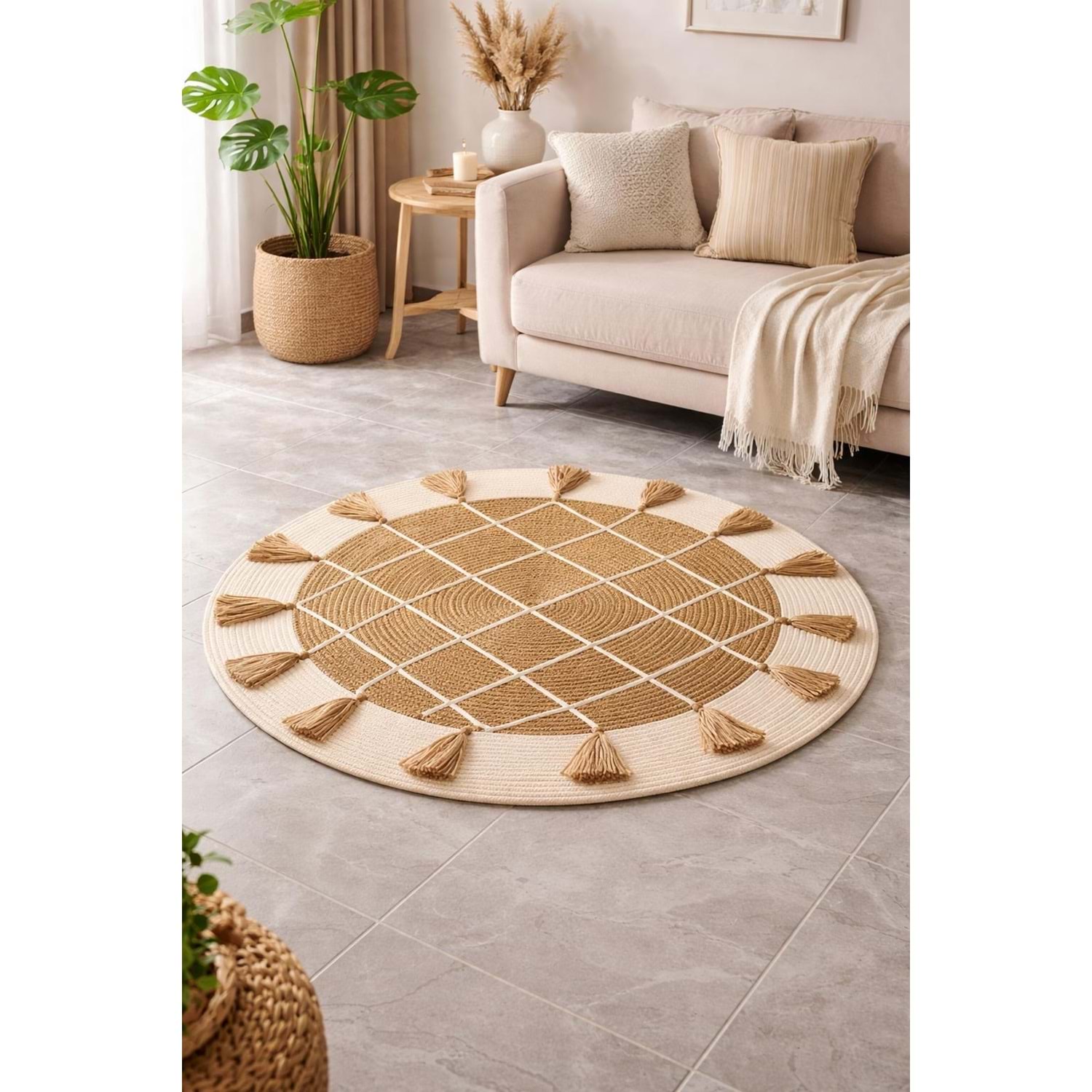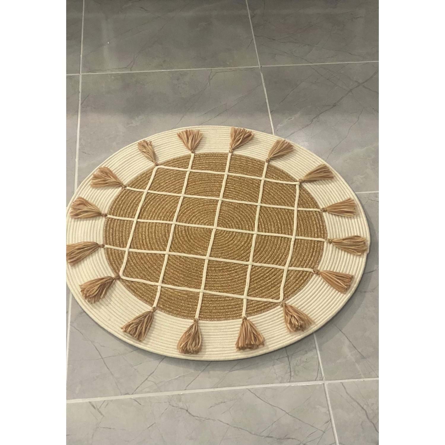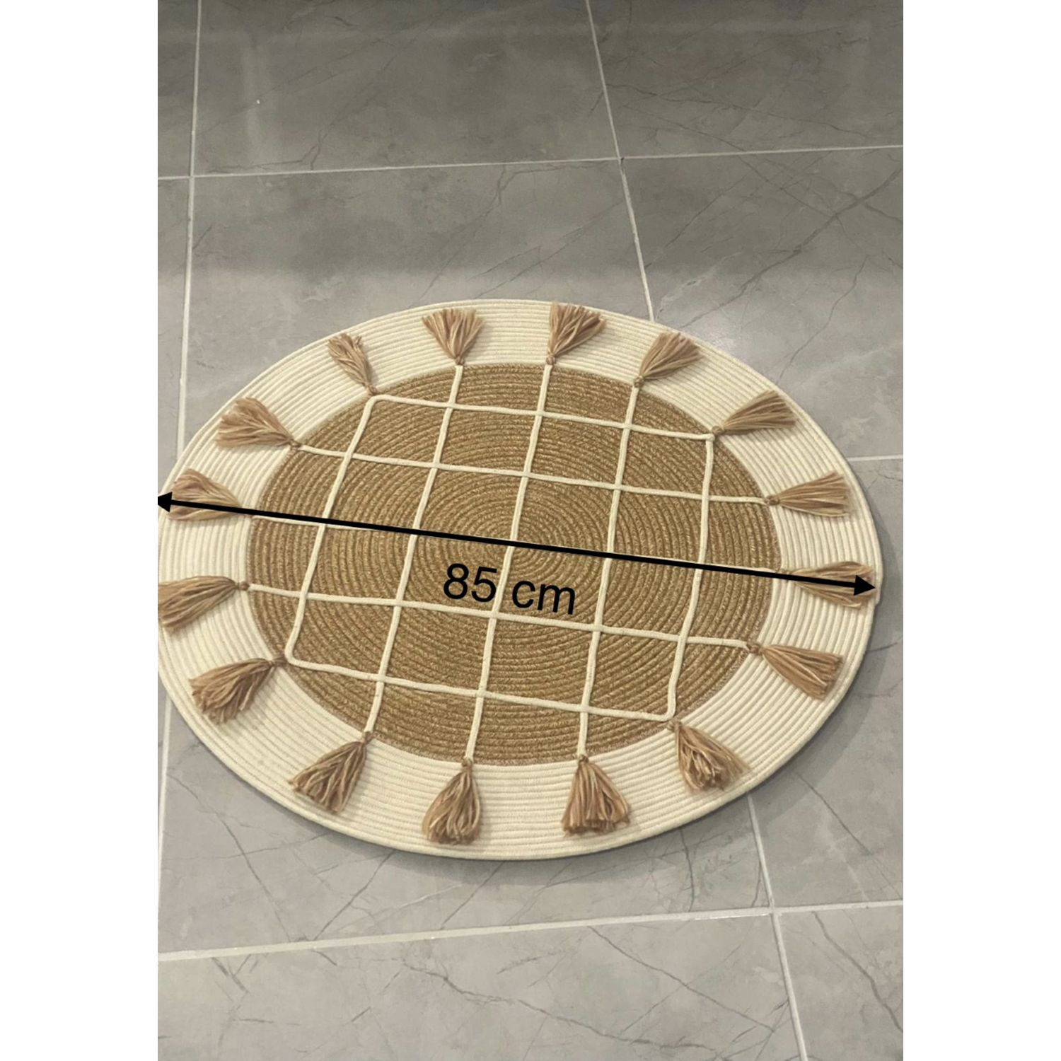 * GADE el yapımı birinci kalite tress ipi paspas ile evinize hem bohem hem modern bir dokunuş katın. Zarif BAMBU & EKRU renkleri, saçak detayları ve yuvarlak formu, dekorasyonunuza estetik ve sıcak bir hava kazandırır.