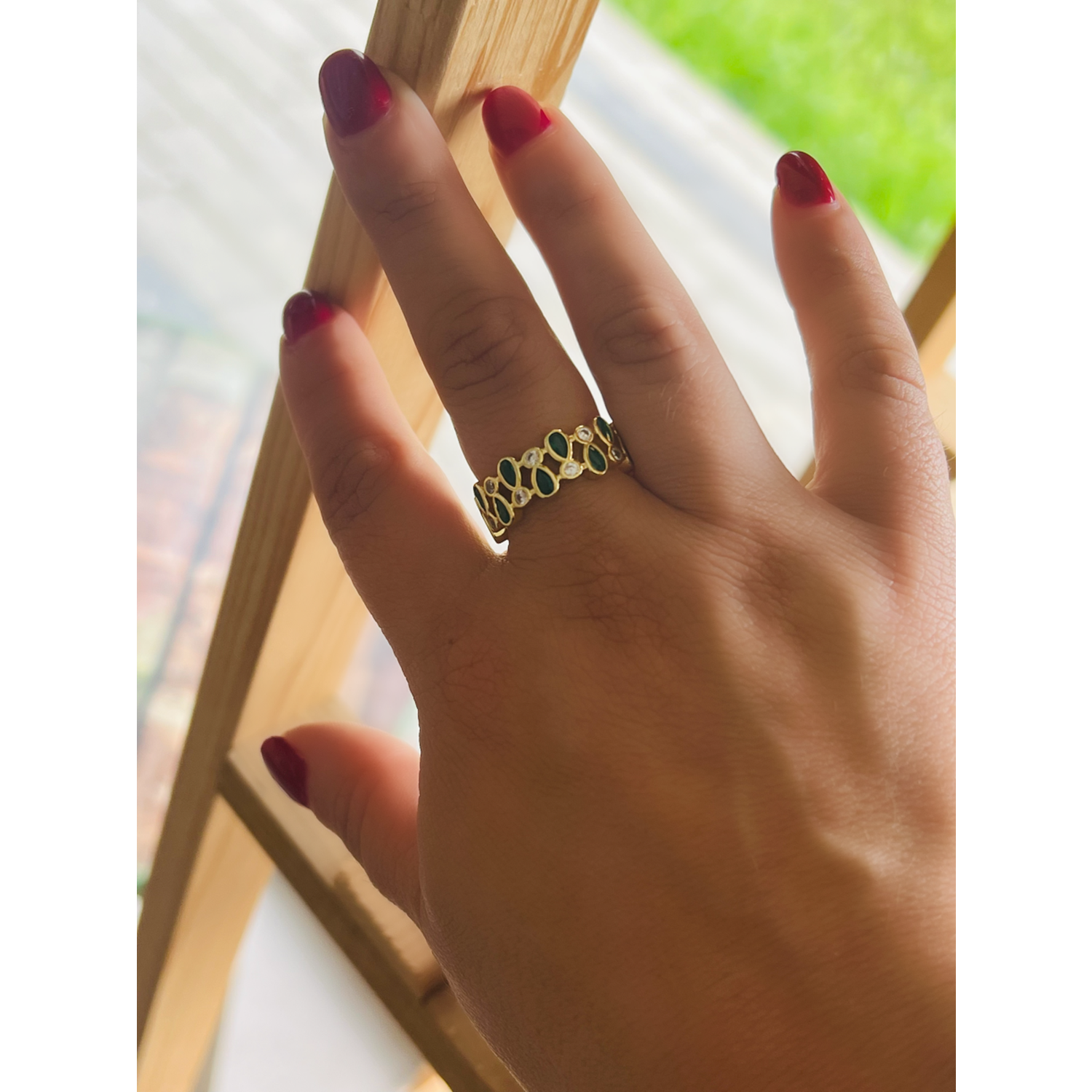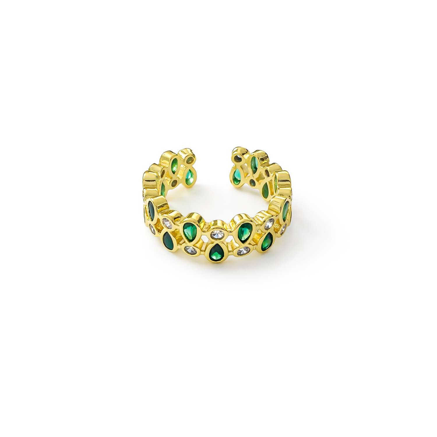 AYARLANABİLİR ÇİFT SIRA YEŞİL RENK DAMLA TAŞLI YÜZÜK ACR0115