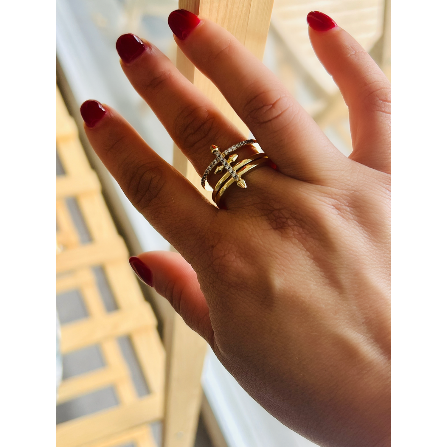 AYARLANABİLİR GOLD RENK ZİRKON TAŞLI OK YÜZÜK ACR0134