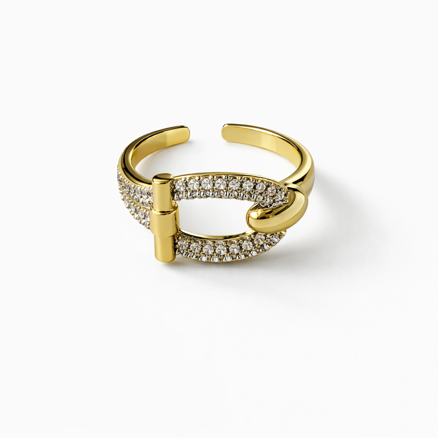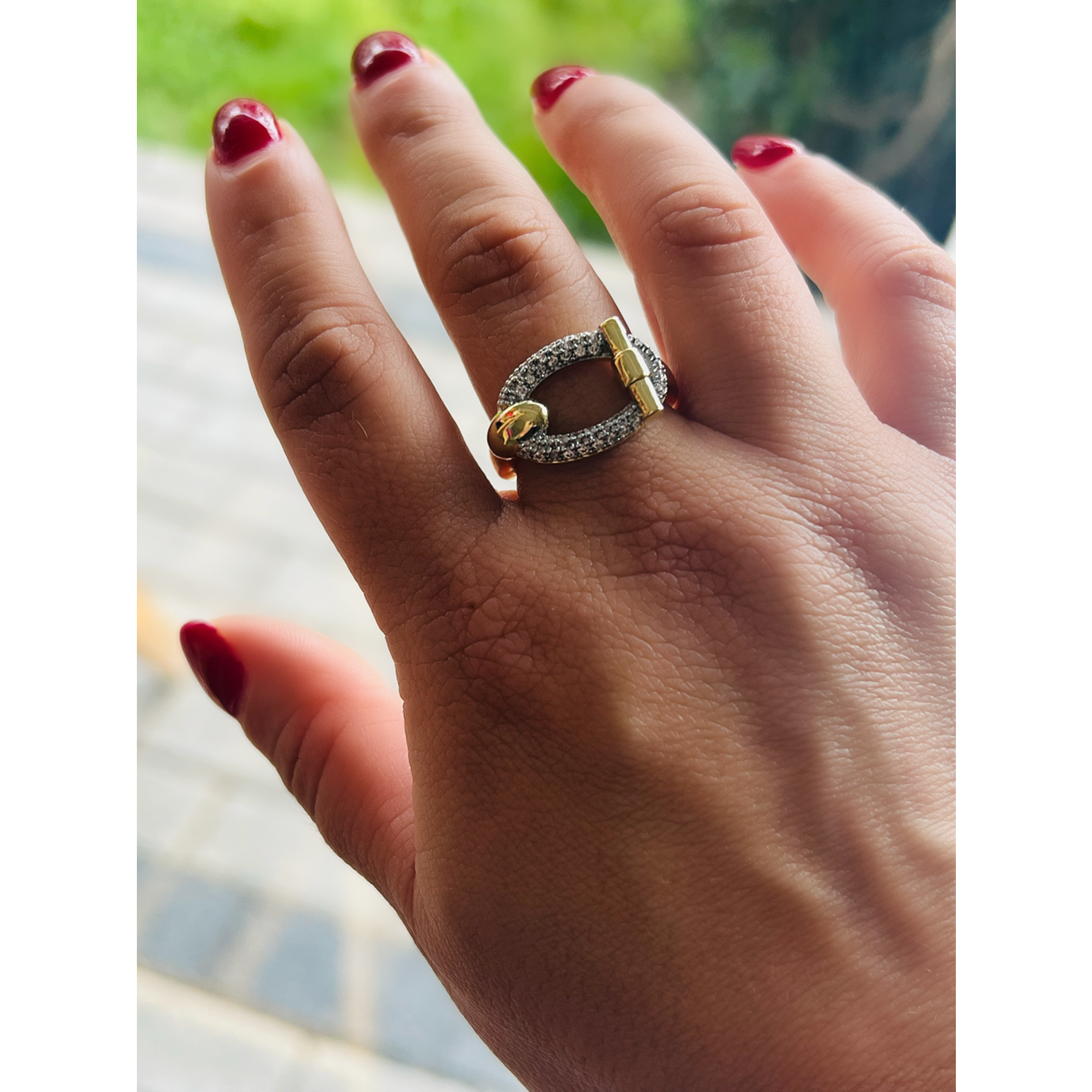 AYARLANABİLİR GÜMÜŞ TAŞLI GOLD RENK YÜZÜK ACR0133