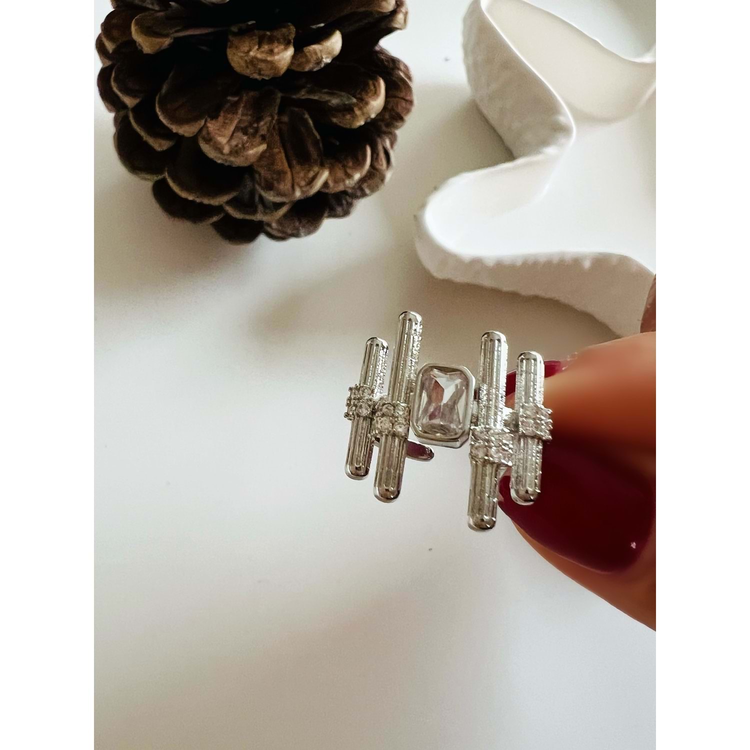 Yüzük, rodyum kaplama, vip üründür. Günlük kullanım için uygundur. Ağır kimyasal maddeler ile temas ettirilmediği sürece kararma yapmaz. Kıstırmalıdır, istediğiniz ölçüde parmağınıza göre ayarlanabilir.
