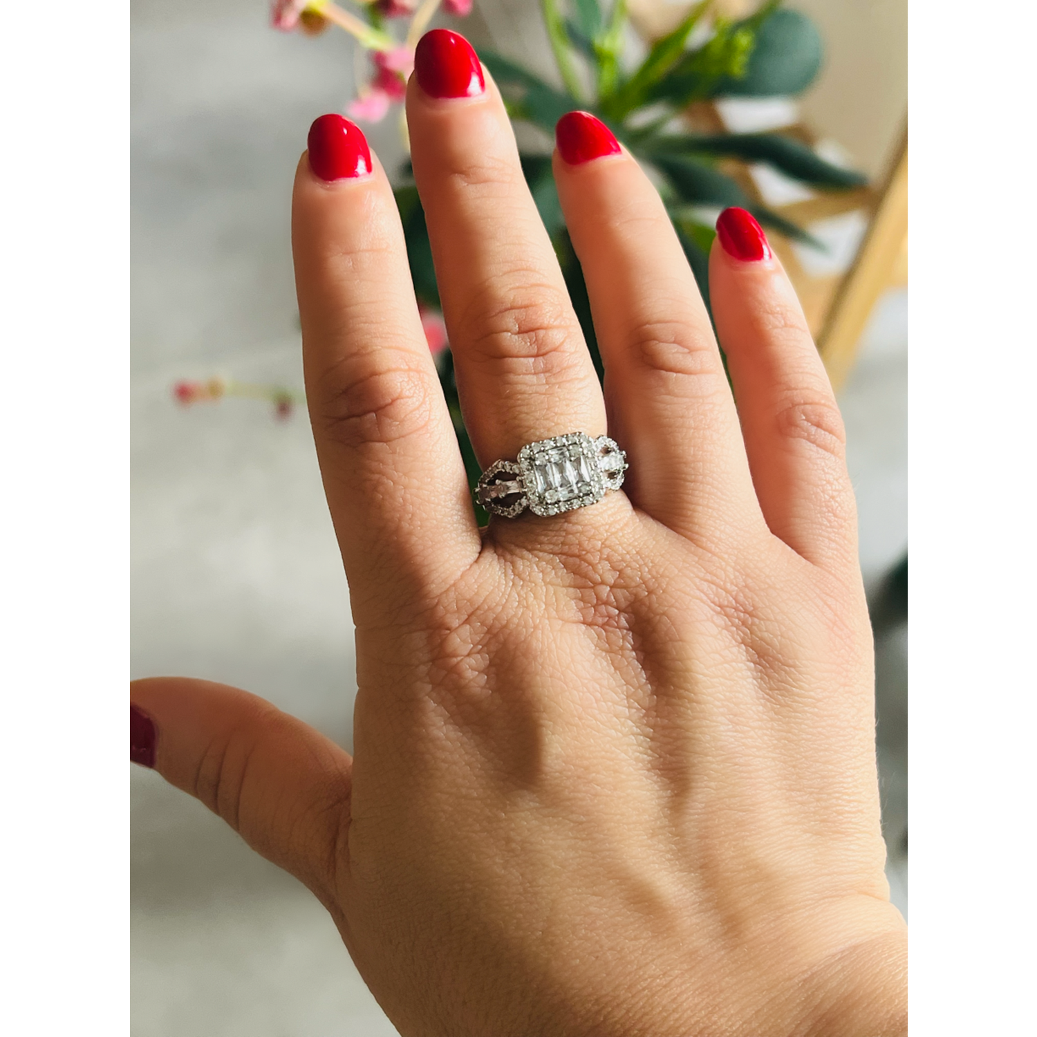 ÇELİK AYARLANABİLİR GÜMÜŞ RENK BAGET TAŞLI YÜZÜK ACR0139