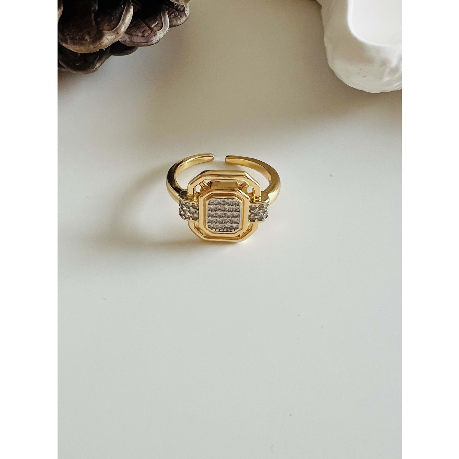 KARE MODEL ÇELİK LEYLA YÜZÜK-GOLD ACR4253